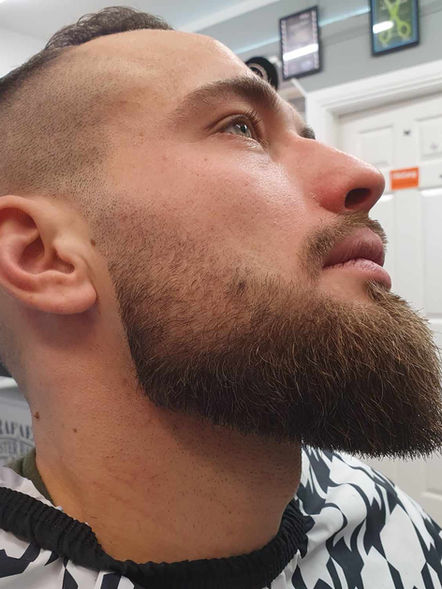 Normal haircut or skin fade, beard trim, micro-pigmentation of the beard, washing the head and chin, styling the hairstyle - £35